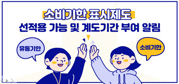 2023년 1월 1일부터 새롭게 시행되는 "소비기한"은 식품등에 표시된 보관방법을 준수할 경우 섭취하여도 안전에 이상이 없는 기한이며, 식품 등의 표시 광고에 관한 법률 개정(2021년 8월)으로 유통기한 대신 소비기한으로 표시하게 될 예정입니다.